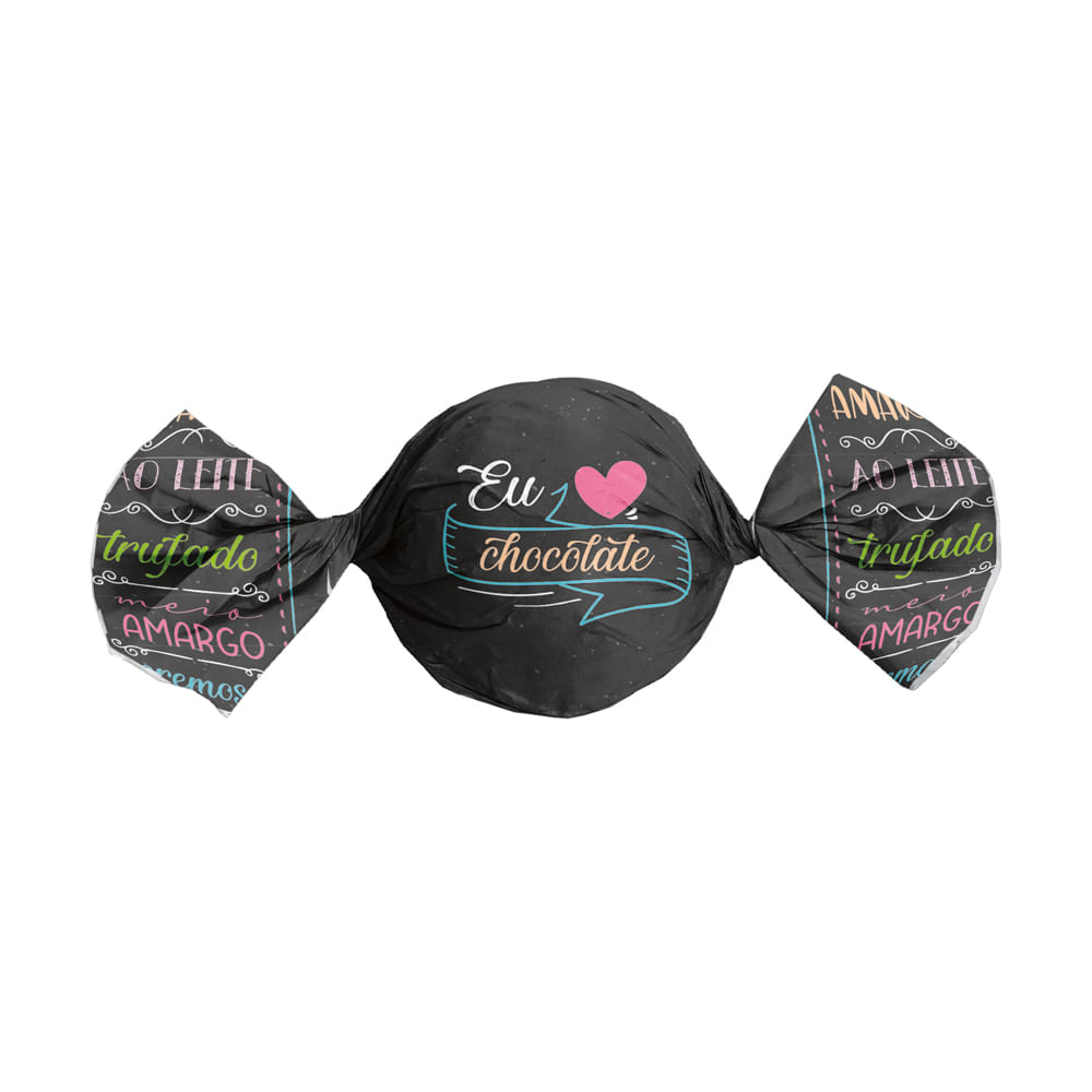Além disso, a embalagem possui a estampa 'Eu Amo Chocolate', trazendo um charme especial para a apresentação dos seus doces.