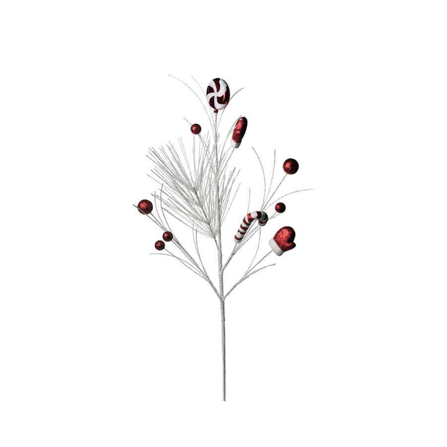 Nome: Galho com Luvas Candy Cane Vermelho e Branco (Sweet Sugar) - 1 Un
