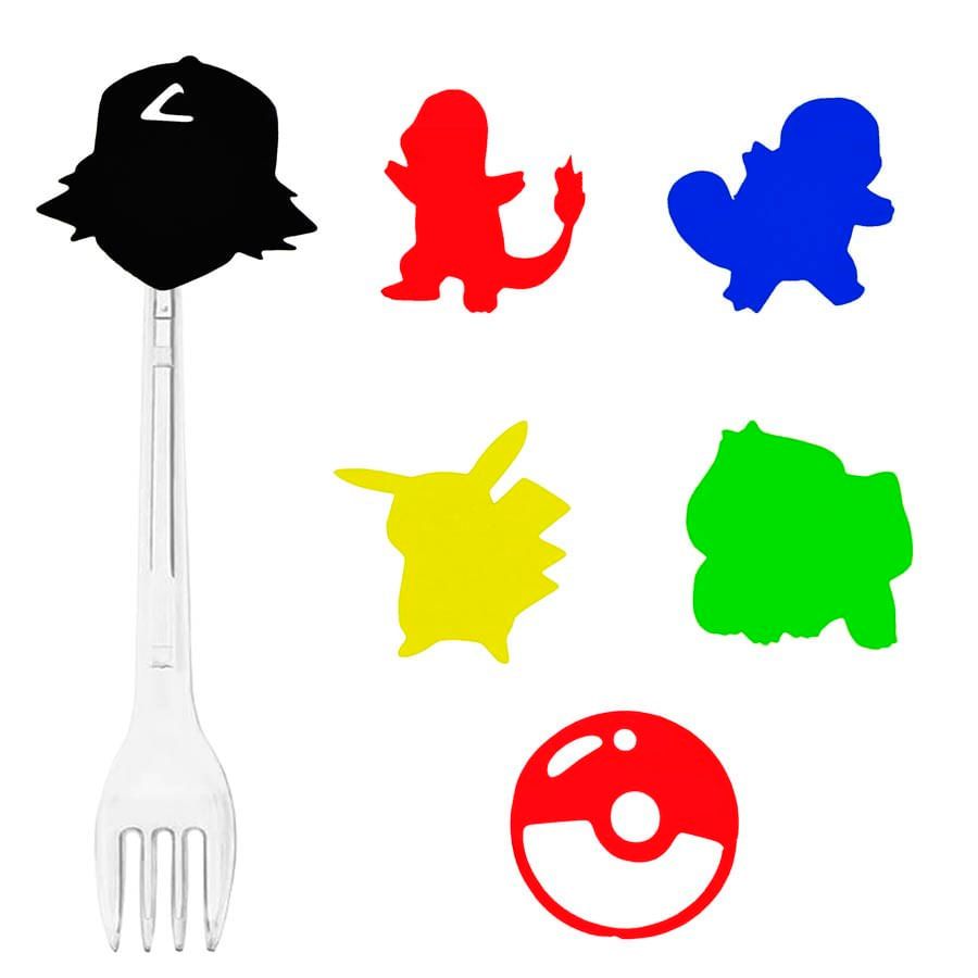 A embalagem contém 6 unidades do garfo com aplique Pokémon, cada um medindo 13cm de comprimento do garfo e 4 ou 5cm de largura das figuras. Feito de plástico e papel cartão, garante durabilidade e resistência durante o uso.