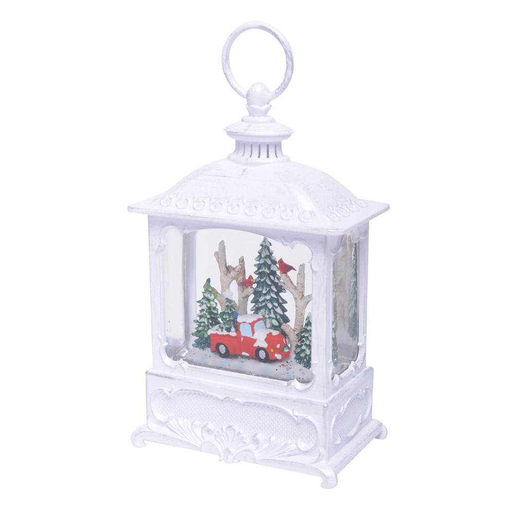 O Globo Água Pergola Caminhao Branco é feito com 70% de água e 30% de plástico, medidas aproximadas de 22cm de altura, 14cm de largura e 8cm de comprimento e funciona com 3 pilhas AA.