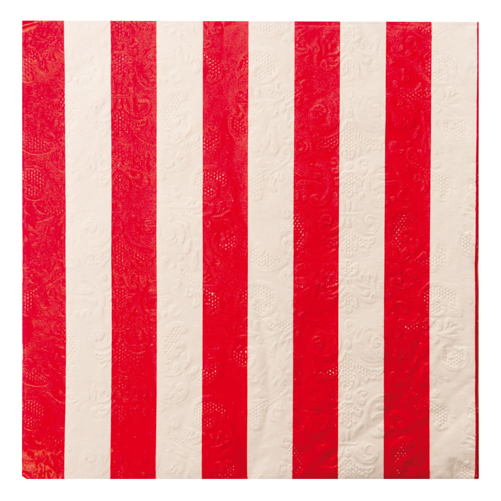 O Guardanapo Listrado VermelhoBranco com 20 Folhas é perfeito para quem busca uma decoração moderna e sofisticada para sua festa. Ele possui medidas aproximadas de Altura: 32,5 cm e Largura: 32,5cm, sendo feito em 95% Polpa e 5% Pigmento Colorido.