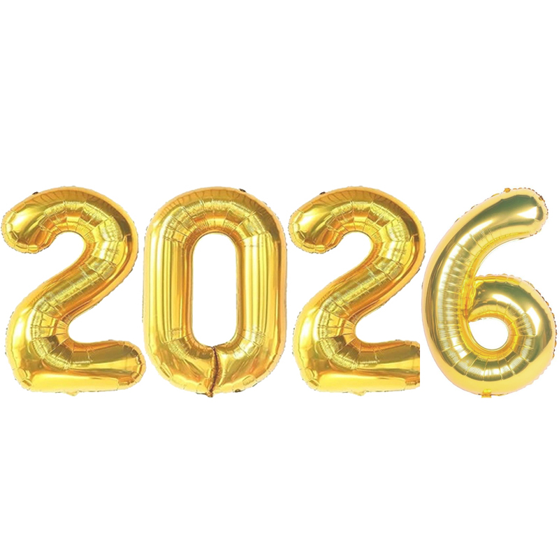 Com o Kit Balão Metalizado 2026 Ouro, sua festa de Ano Novo será cheia de brilho e boas vibrações, celebrando a chegada de um novo ano de forma especial e inesquecível!