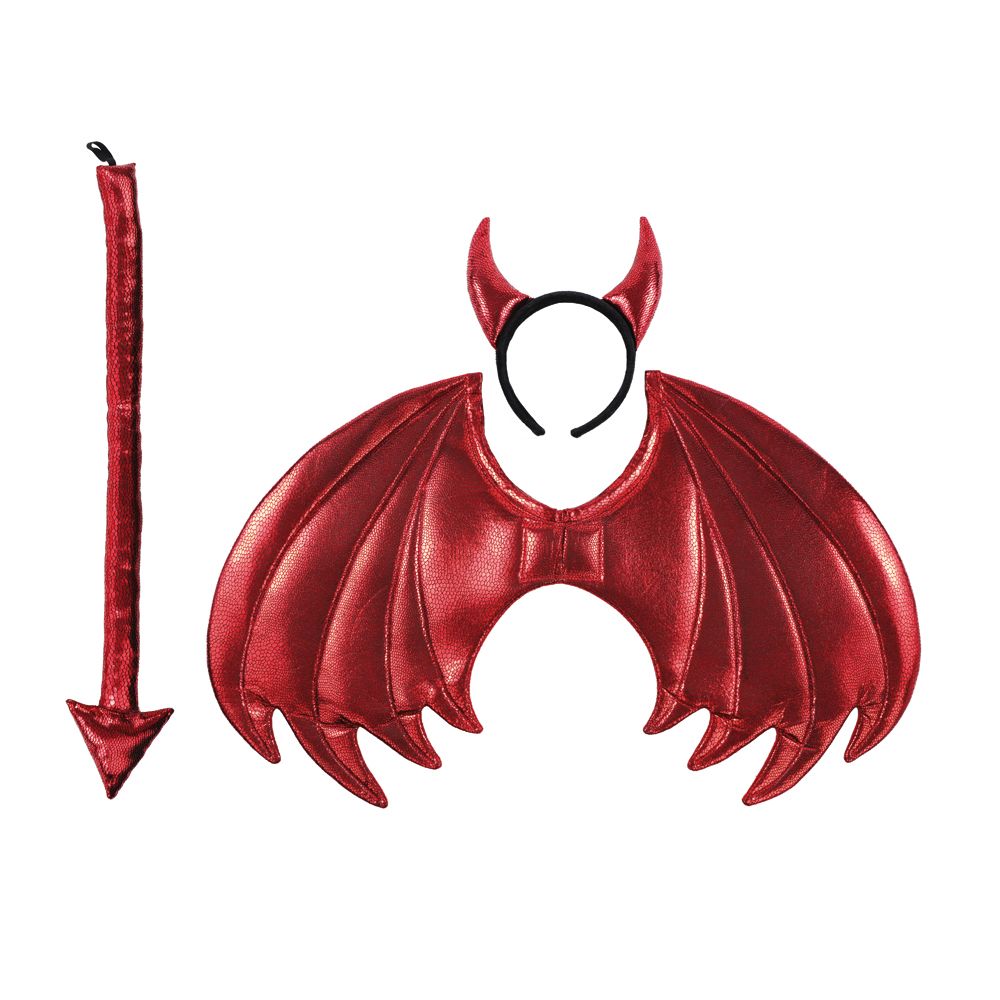 Nome: Kit Fantasia Halloween - Tiara com Cauda e Asa Vermelha