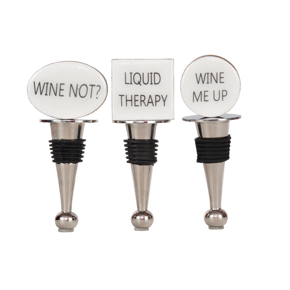Aproveite agora mesmo para adquirir o seu Kit Tampa para Vinho Frases Prata e Branco na Festas da 25 e faça bonito em suas reuniões e jantares.