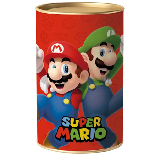 Lata temática do Super Mario Bros, perfeita para embalar ovos de Páscoa com um design divertido e icônico.