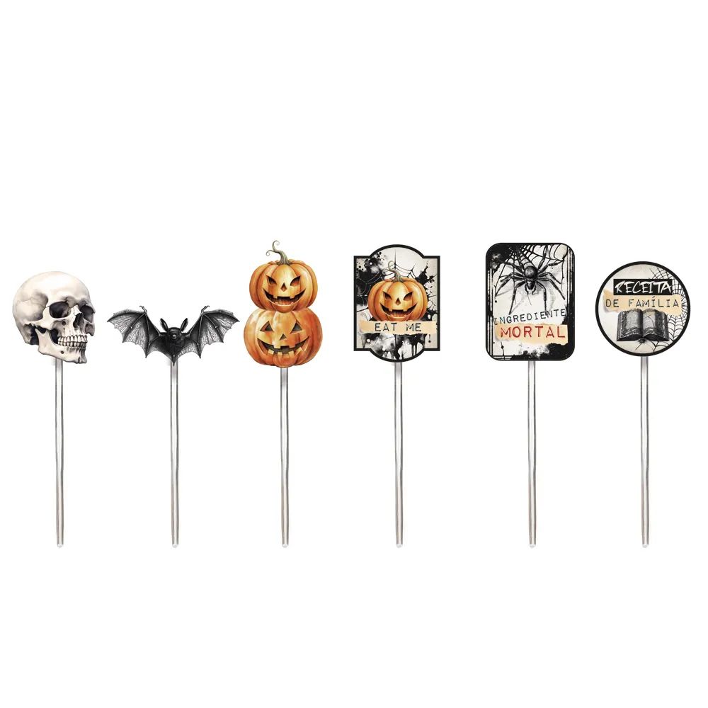 Experimente combinar o Pick Decorativo Welcome Halloween com outros itens decorativos da mesma temática, como abóboras, teias de aranha e velas, para criar uma atmosfera sinistra e envolvente. Use a criatividade na disposição dos picks para personalizar sua festa e impressionar seus convidados.