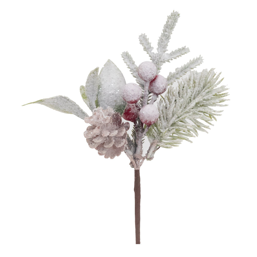 O Pick Folhas Frutas e Pinha Vermelho e Marrom é produzido com 90% de plástico, 5% de metal e 5% de papel, oferecendo maior resistência e durabilidade.