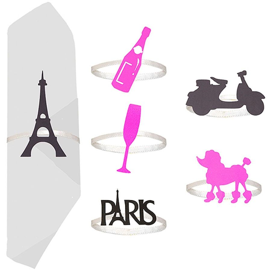 Fabricado com papel cartão e tecido de alta qualidade, o Porta Guardanapo Festa Paris possui uma fita de 10cm e uma figura de 4 a 5cm, garantindo durabilidade e resistência. Sua embalagem contém 6 unidades, o que é ideal para atender às necessidades de festas de diversos tamanhos.