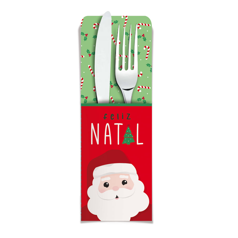Compre agora o Porta Talher Papai Noel 7x20 - 8 unidades na Festas da 25 e deixe sua mesa de Natal ainda mais bonita! Papai Noel chegou e trouxe sua criatividade e bom gosto para enfeitar sua festa. Este porta talher é feito de papel com pigmento colorido, medindo aproximadamente 20cm de altura e 7cm de largura. Cada kit contém 8 unidades. Adquira já o seu e torne seu evento ainda mais especial.