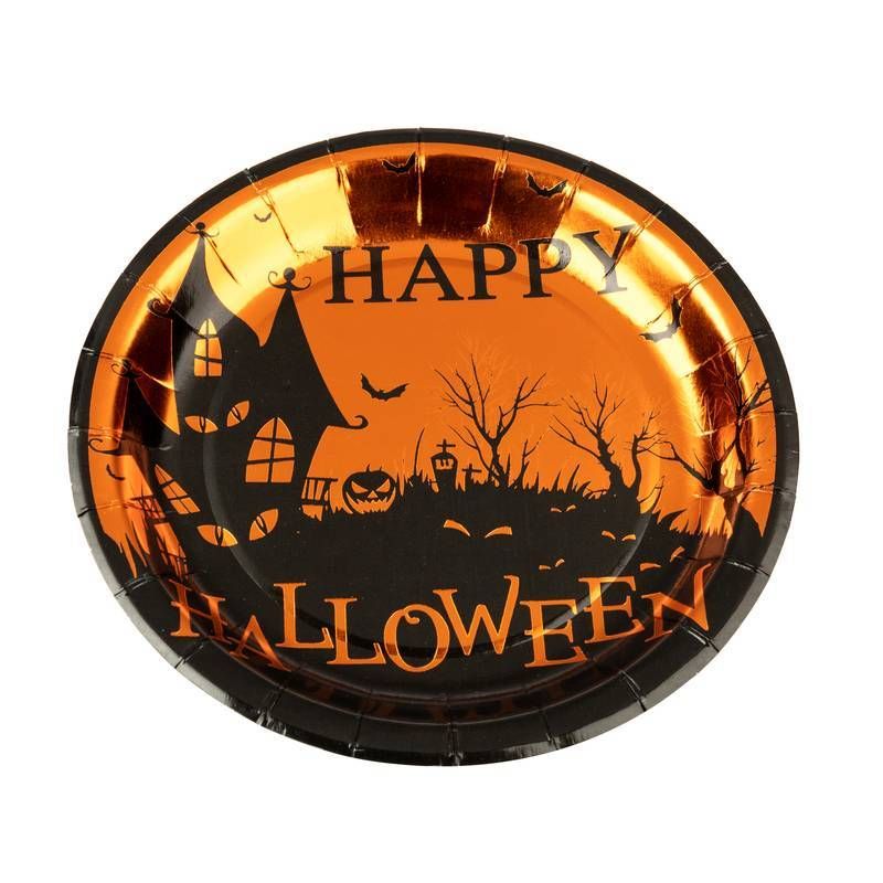 Design Exclusivo: Com detalhes metalizados e uma estampa temática de Halloween, este prato irá adicionar um toque especial à decoração da sua festa.