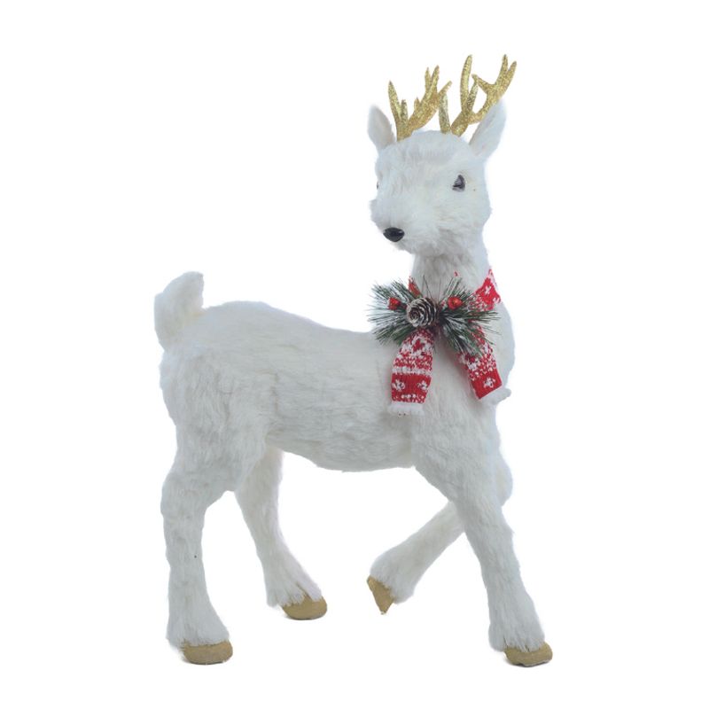 A Rena Decorativa Em Pé com Cachecol Branco Vermelho da Cromus é perfeita para trazer um clima natalino e encantador para o seu ambiente. Com um tamanho de 58cm de altura, ela se destaca pela sua elegância e detalhes cuidadosamente elaborados.