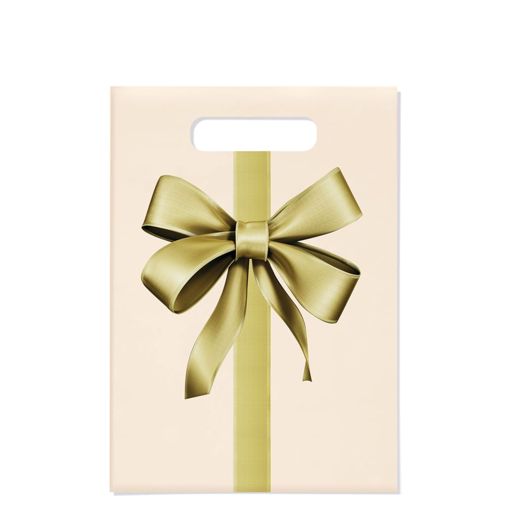 Leve sofisticação para suas embalagens com a Sacola Flex Cromus 30x45cm Laço Marfim e Ouro