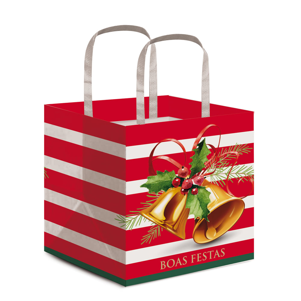 Sacola para Panetone Sinos Natal G 24,5X22X16 - 10 Un