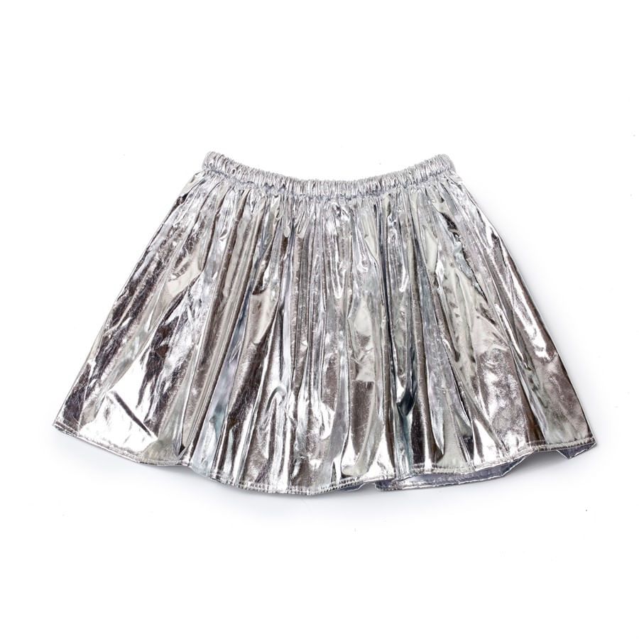 Brilho intenso: O tecido prata brilhoso dá um toque especial à saia, proporcionando um visual deslumbrante.