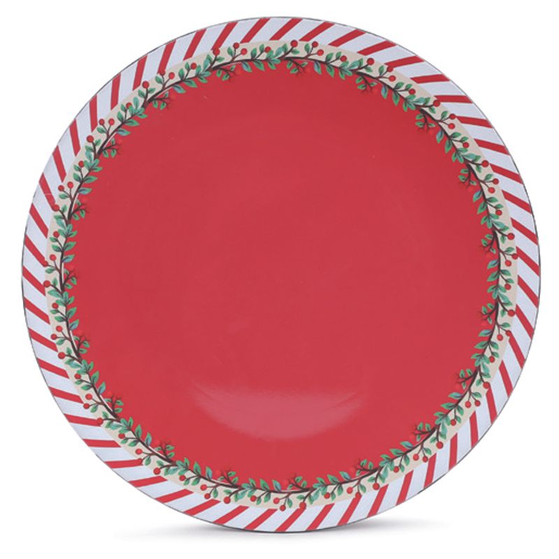 Apresentamos o Sousplat com Borda Listrada Branco Vermelho da marca Cromus. Com um design sofisticado, esse sousplat é perfeito para deixar a sua mesa de Natal ainda mais charmosa e requintada.