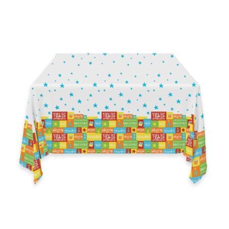 A toalha possui uma estampa vibrante e colorida com a frase "Feliz Aniversario", trazendo alegria e celebrando esse momento especial. Seu design exclusivo é perfeito para festas de todas as idades e estilos, desde festas infantis até festas de aniversário de adultos.
