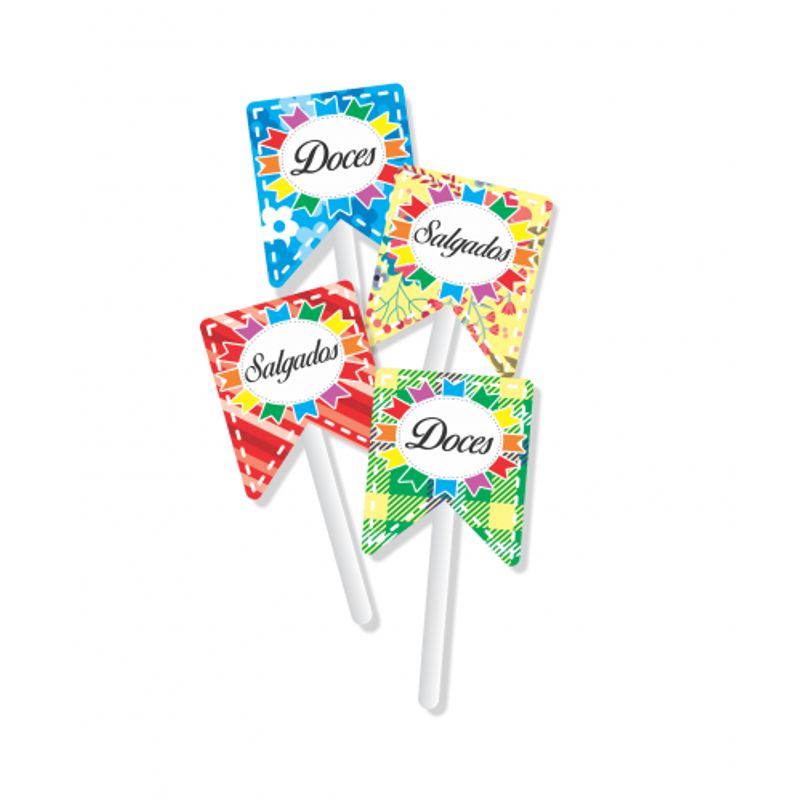 Decoração de doces, guloseimas e salgados: Os Toppers Bandeira Junina podem ser espetados em cupcakes, brigadeiros, salgadinhos e outros alimentos, agregando um toque temático à sua festa.