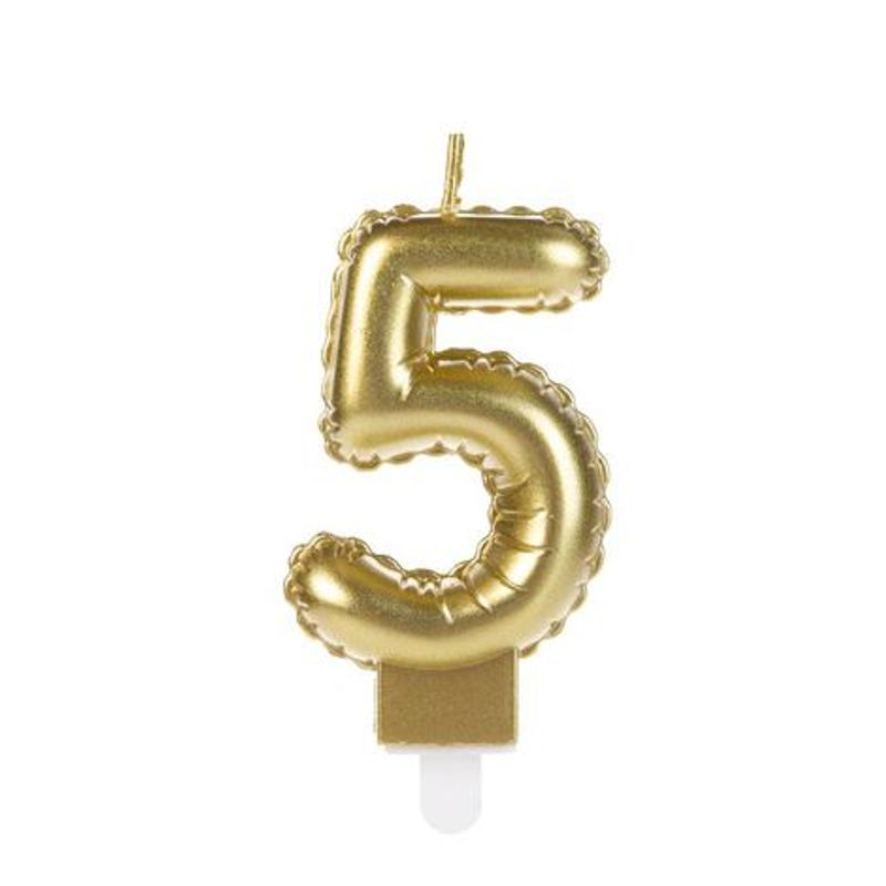 Com dimensões ideais, essa vela possui o número 5 e é desenvolvida em material de alta qualidade para garantir segurança e durabilidade durante a queima. Sua cor dourada traz um brilho especial, adicionando charme e glamour à decoração.