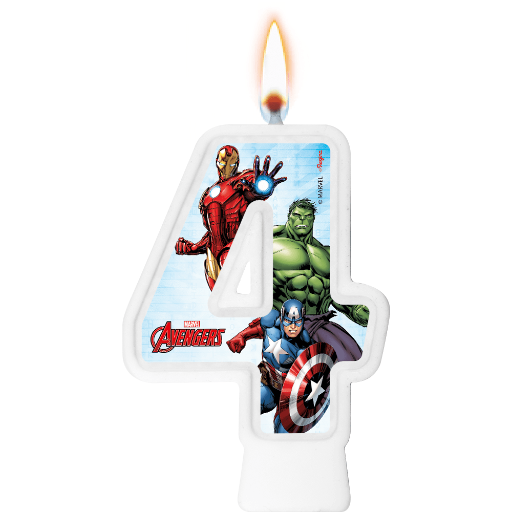 Compre itens da Festa Avengers para deixar sua festa ainda mais completa e bonita, use Vela Festa Avengers Número 4com Descartáveis Azul, vermelho e verde, complemente com um lindo arco de Balões Avengers.