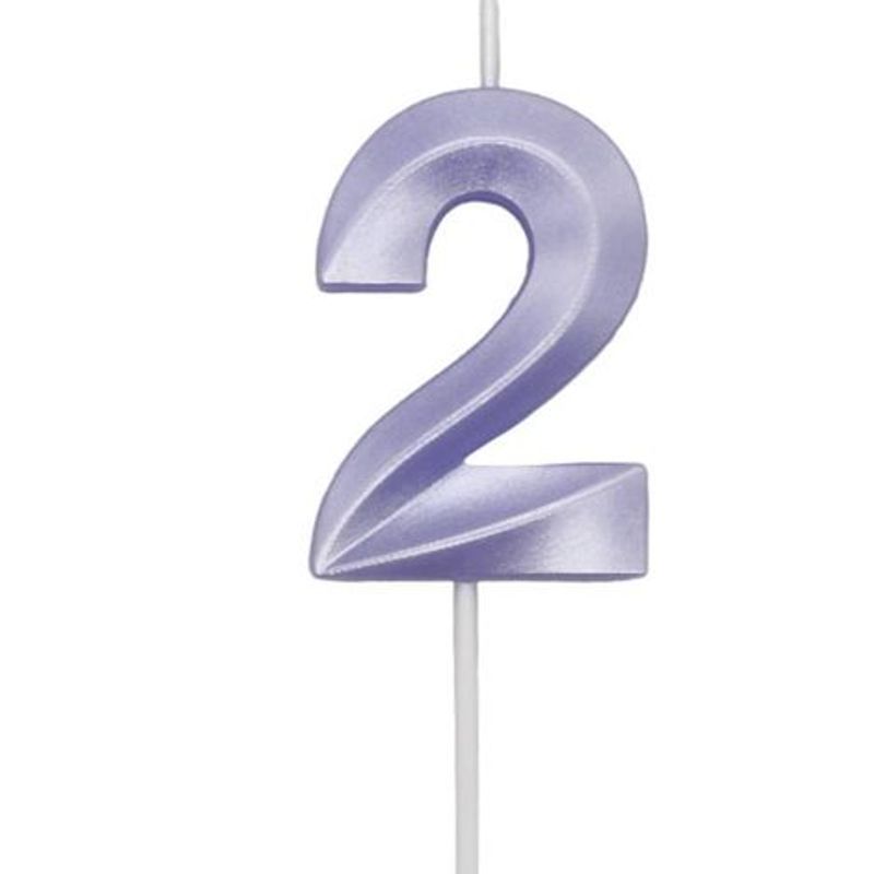 Ilumine e decore seu ambiente com a Vela Mini Design Lilás Candy Color Número 2 - 1 Un da Silver Plastic